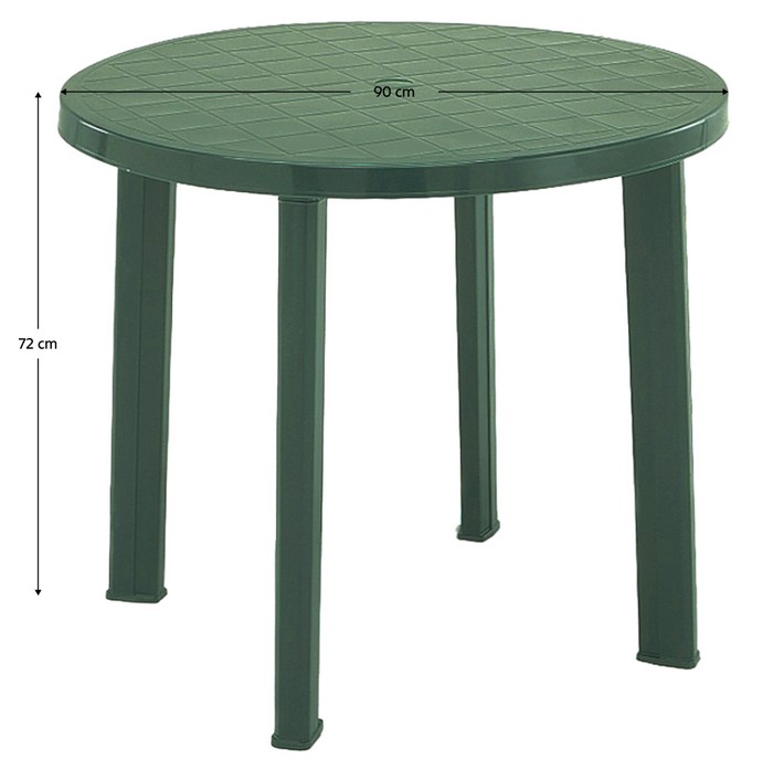 Dodajte svojej záhrade alebo terase praktický prvok v podobe záhradného stola TUNDO. Tento okrúhly stôl je vyrobený z plastu v zelenej farbe, vďaka čomu je ľahký, odolný a jednoducho zapadne do vonkajšieho prostredia. Rozmery stola sú 90 cm v priemere a 72 cm na výšku, čo poskytuje dostatok miesta na pohodlné stolovanie pre 2 až 4 osoby. Stôl je vybavený praktickým otvorom na slnečník, ktorý oceníte najmä počas slnečných dní, keď potrebujete vytvoriť príjemný tieň.Tundoje ideálnou voľbou na grilovanie, rodinné oslavy aj neformálne posedenia s priateľmi. Vďaka plastovému materiálu je nenáročný na údržbu a predstavuje kvalitný taliansky výrobok vhodný na každodenné používanie v exteriéri.