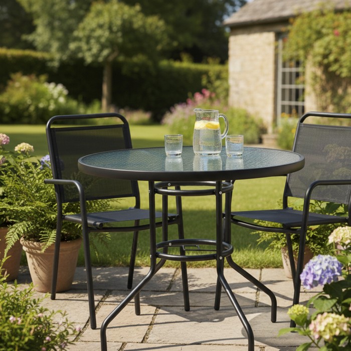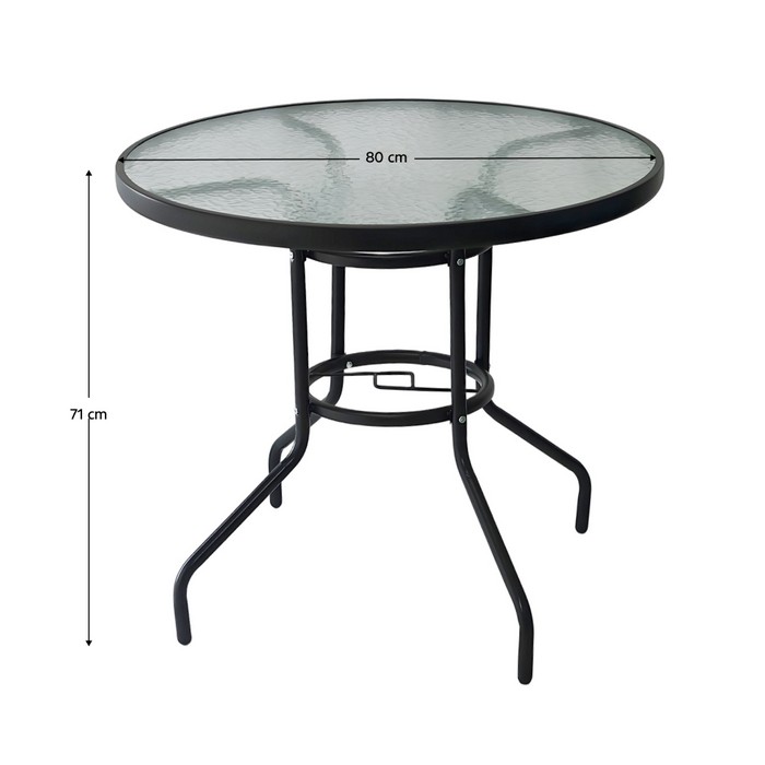 Jedálenský stôl BORGEN NEW TYP 2 je praktickým doplnkom na záhradu, terasu či balkón, kde vytvorí príjemné miesto na každodenné stolovanie aj oddych. Vďaka jednoduchému a modernému dizajnu pôsobí elegantne a ľahko sa kombinuje s rôznym záhradným nábytkom. Stabilitu zabezpečuje pevná oceľová konštrukcia v čiernej farbe, zatiaľ čo doska z tvrdeného skla dodáva stolu vzdušný a ľahký vzhľad. Stôl je vyrobený z kombinácie tvrdeného skla a ocele. Má okrúhly tvar a jeho rozmery sú (ŠxHxV): 80x80x71 cm. Praktickým prvkom je otvor na slnečník, ktorý oceníte najmä počas horúcich letných dní, keď si chcete dopriať príjemný tieň pri sedení vonku. Nosnosť stola je 50 kg, takže poskytuje dostatočnú stabilitu na bežné stolovanie či podávanie občerstvenia. Jedálenský stôl je ideálny na letné posedenia, grilovačky alebo relax pri dobrej knihe či hudbe. Dodáva sa v demonte.