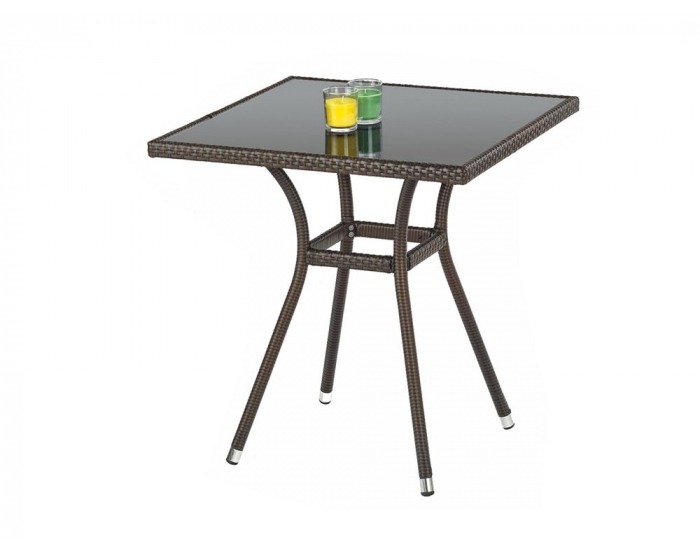 Záhradný stolík MOBIL je vyrobený z umelého ratanu tmavohnedej farby. Doska stola je zhotovená z tvrdeného čierneho skla. Rozmery stolíka sú (ŠxHxV): 70x70x74 cm a možno zaň pohodlne usadiť 2 osoby. K záhradnému stolíku odporúčame dokúpiť záhradné stoličky Midas. Maximálna nosnosť je 30 kg.