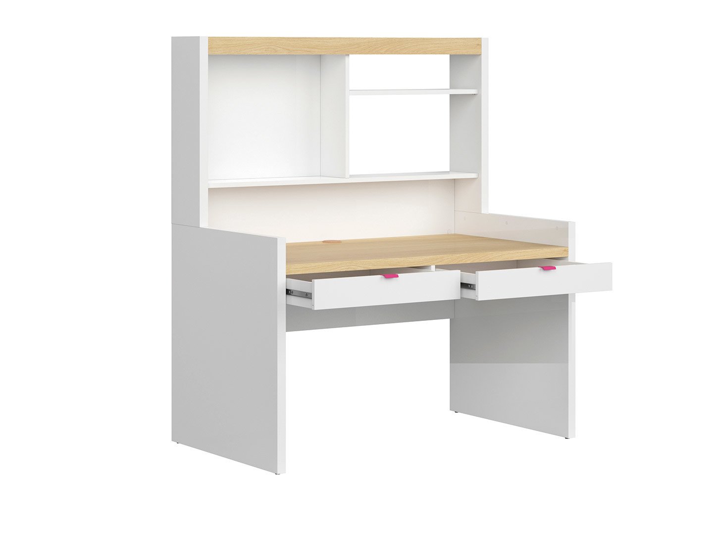 Zásuvka k písaciemu stolu (2 ks) Princeton SZU/BIU - biely lesk / fuksia