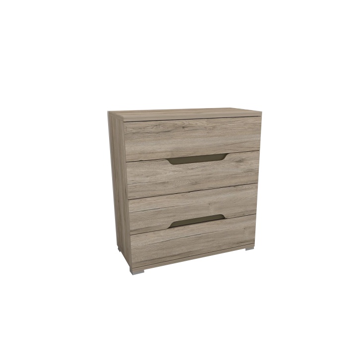 Komoda BETINO DA-44 je štvorzásuvková komoda, ktorú možno kombinovať s ostatnými prvkami z modelovej rady Betino. Výška nožičiek je 2 cm. Systém Betino je moderná sektorová zostava vo farebnom prevedení dub sonoma tmavá s jednoduchými elegantnými tvarmi. Zostava je vyrobená z kvalitnej laminovanej DTD a doplnená zaujímavými úchytkami.