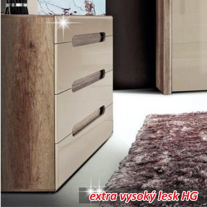 Zásuvková komoda Triztan - dub antický / béžový vysoký lesk